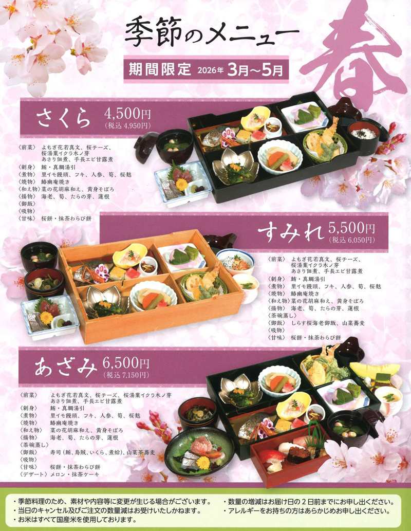 ◆ 3月~5月『春』期間限定季節のメニュー